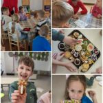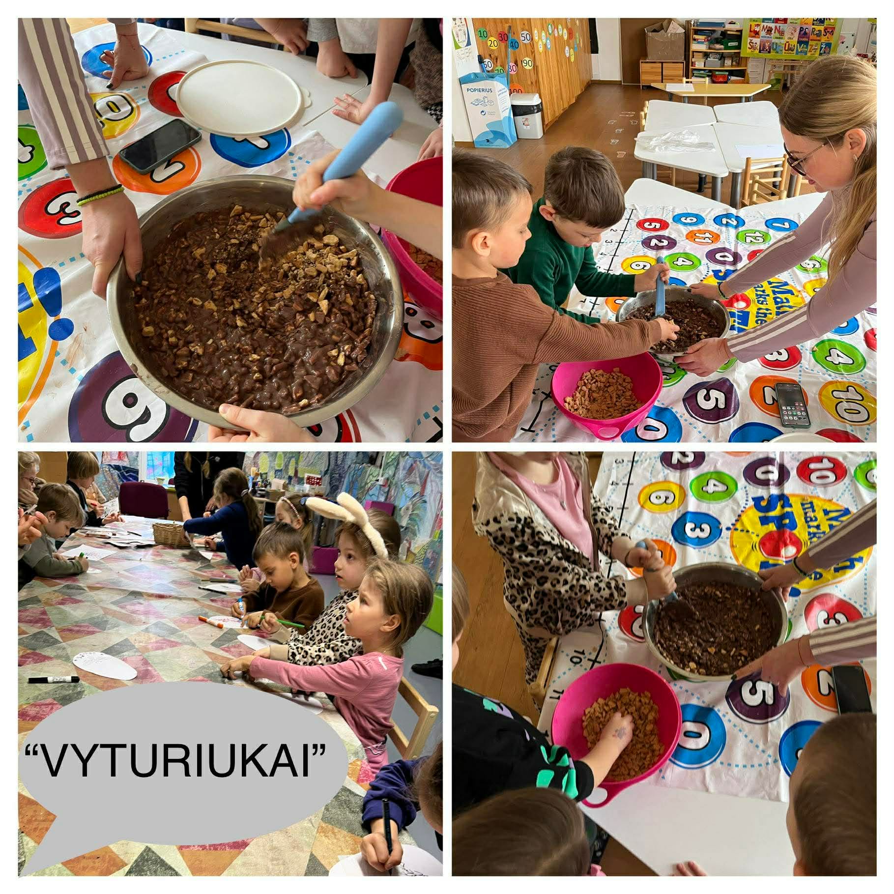 „Velykinių gardėsių diena“ ugdytiniai kartu su mokytojomis ir tėvais gamino tinginio pyragą ir dekoravo sausainius. Mokėsi matuoti, sverti, maišyti, planuoti veiksmų seką, bendradarbiauti ir pasiskirstyti užduotimis. Paruoštus gardėsius ragavo, reflektuodami ugdytiniai dalijosi įspūdžiais, džiaugėsi bendru darbu ir suprato, kad dirbant kartu užduotys atliekamos sklandžiau, greičiau ir smagiau.